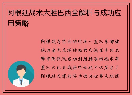 阿根廷生死战的惊心动魄反击,无疑成为了足球历史上最具戏剧性的一刻之一。在这场决定命运的比赛中,阿根廷队面临巨大的压力和困境,但他们展现出的顽强拼搏和极致反击,使得球迷们陷入了震撼与激情的双重体验。本篇文章将围绕阿根廷生死战的反击时刻,深入分析这场比赛中四个关键方面,从阿根廷的战术布局、进攻组织、个人...